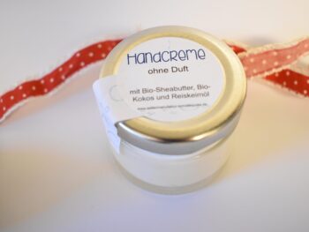 Hinweis: Aufgrund dessen dass im Balsam kein zusätzlicher Emulgator vorhanden ist, kann es vereinzelt zu kleinen Auskristallisierungen (Flockungbildung) der Sheabutter oder des Bienenwachses kommen. Beim Auftagen des Balsams schmelzen die Auskristallisierungen und der Balsam lässt sich ohne Rückstände auftragen und verteilen.